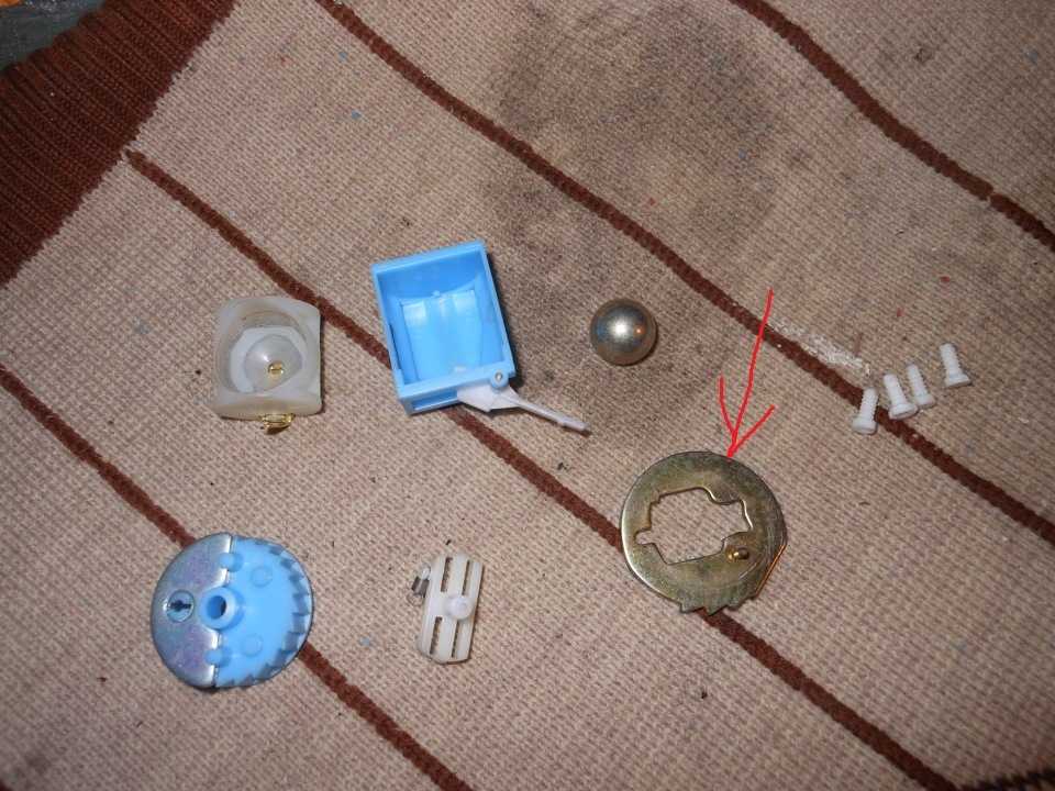 Под этой крышкой расположен первичный механизм ремня – коробка с цилиндром, в середине которой находится шарик и “коромысло”. Можете его тоже поддеть проволокой и затем свободно извлечь пальцами.