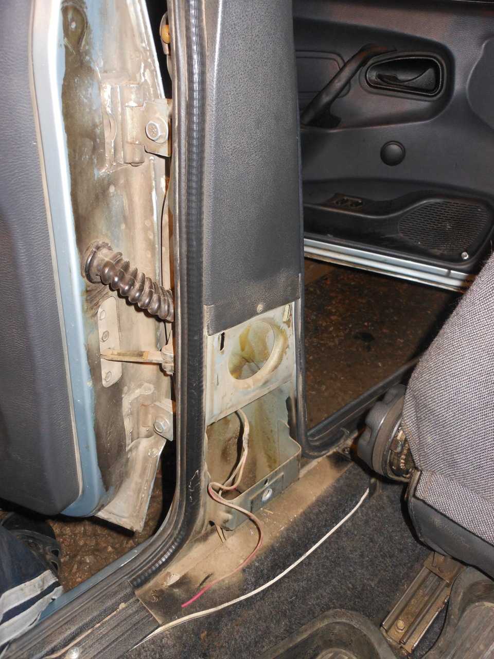 Вытащить катушку, отключить от нее разъем электрического магнита. При этом петлю на стойке трогать не нужно, поскольку все работы проводятся внутри салона.