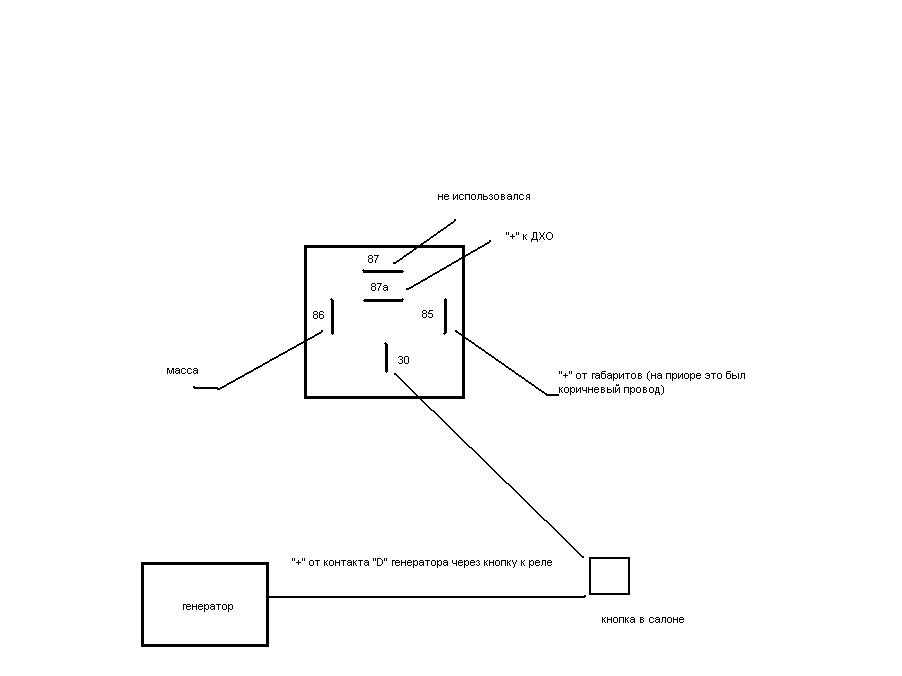 Подключение через 4 контактное реле от генератора или датчика масла Два следующих способа имеют общую основу и подразумевают работу дневных ходовых огней только после запуска двигателя.