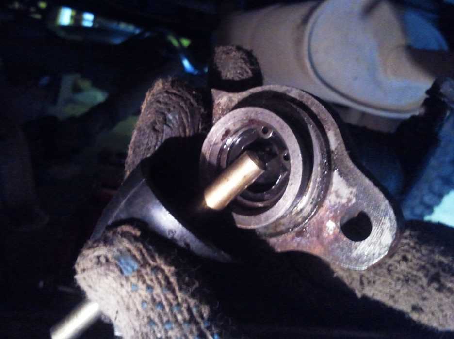 После этого снимаем и чистим сигнальное устройство. Отсоединяем цилиндр от вакуума, вынимаем стопорную шайбу с одной стороны и откручиваем торцевую гайку с другой. Достаем внутренности ГТЦ. Осматриваем внутреннюю поверхность на предмет царапин. Меняем ремкомплект и собираем в обратной последовательности.