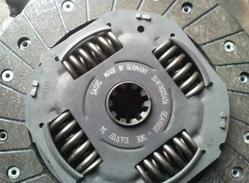 Хорошо видны четыре демпферные пружины ведомого диска сцепления, а также изношенные фрикционные накладки