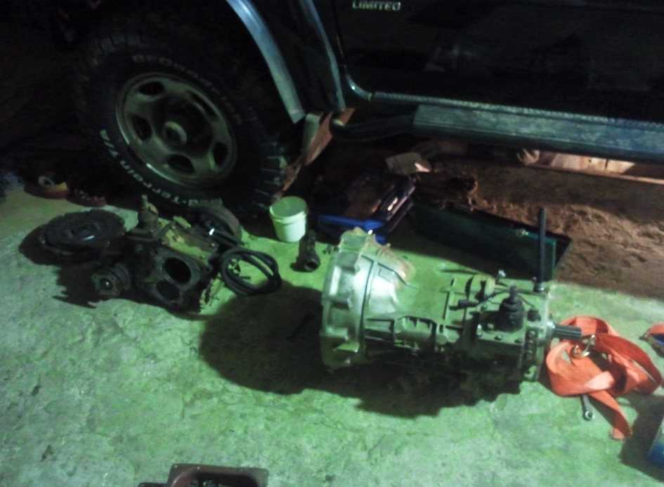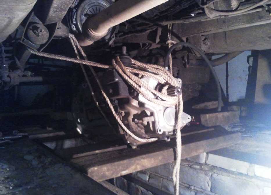 - Карданный вал откручивается от редуктора и ручного тормоза, снимается. Откручивается и снимается рабочий цилиндр сцепления.