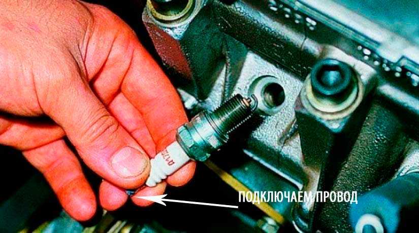 Но можно проверить и простым способом, без использования стенда. Выкрученную свечу подключают к наконечнику провода высокого напряжения и юбкой касаются замассированного элемента, зачастую таким выступает крышка клапанного механизма.