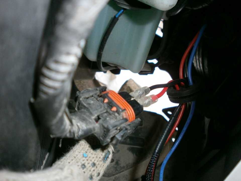 - к выходящему из подключенного выше жгута трехпиновому разъему подключается колодка штатной проводки, ранее присоединяемая непосредственно к цоколю H4;