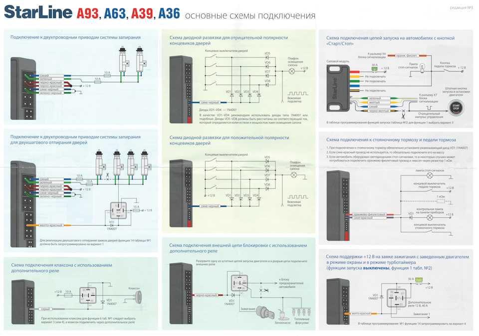 Таким образом функционал и соответственно стоимость Вы можете выбирать сами. Установка соединений проводки согласно карте подключения должна осуществляться при отключенном аккумуляторе автор видео — Автоэлектрик Сергей Зайцев. Охранный комплекс Старлайн А93 предусматривает четыре способа управления центральным замком: слаботочное управление;.