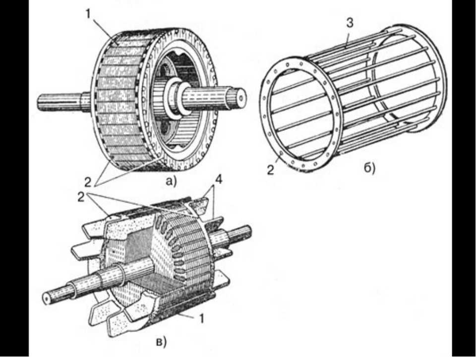 Стоит отметить, что не у всякого ротора есть обмотки, которые, в сущности, представляют собой электромагнит. Вместо них могут применяться постоянные магниты, как в бесщеточных двигателях постоянного тока. А у асинхронного двигателя с короткозамкнутым ротором обмоток в привычном виде вовсе нет, вместо них используются короткозамкнутые металлические стержни, но об этом ниже.