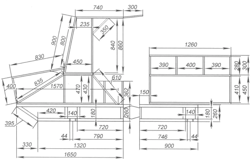Перед сборкой караката, необходимо составить примерный чертеж предполагаемой конструкции. Примеры схем представлены на фото ниже. Сконструировать объемную модель караката можно в различных 3-D пакетах, например, программа «КОМПАС-3D v18».