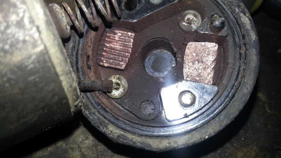 Когда же происходит износ этих щеток, пружина начинает очень плотно упираться в щеткодержатель, таким образом, и контакт обеспечивается исключительно за счет веса пружины.