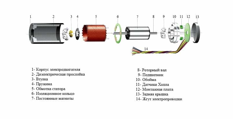 - Измерительные датчики (чаще всего Холла), позволяющие определить положение вращения вала.