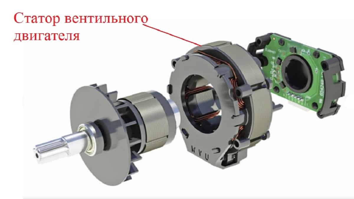 Пример конструкции вентильного двигателя приведен на рисунке ниже: