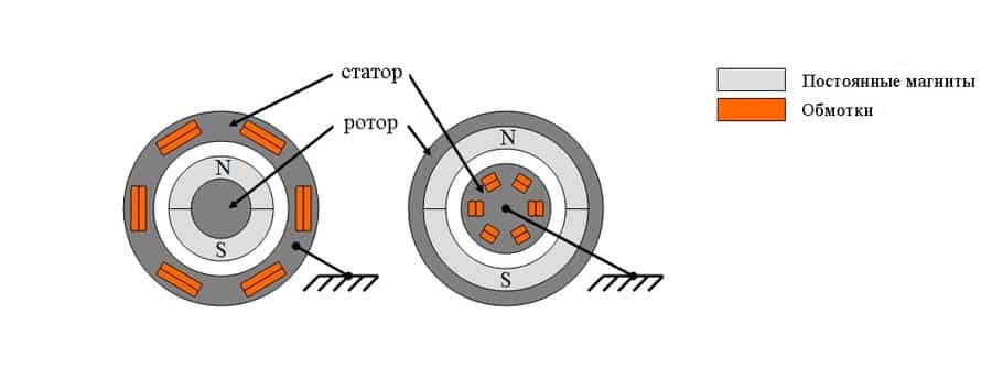 В зависимости от конструкции ротора бесконтактные двигатели могут иметь внутрироторное и внешнероторное исполнение.