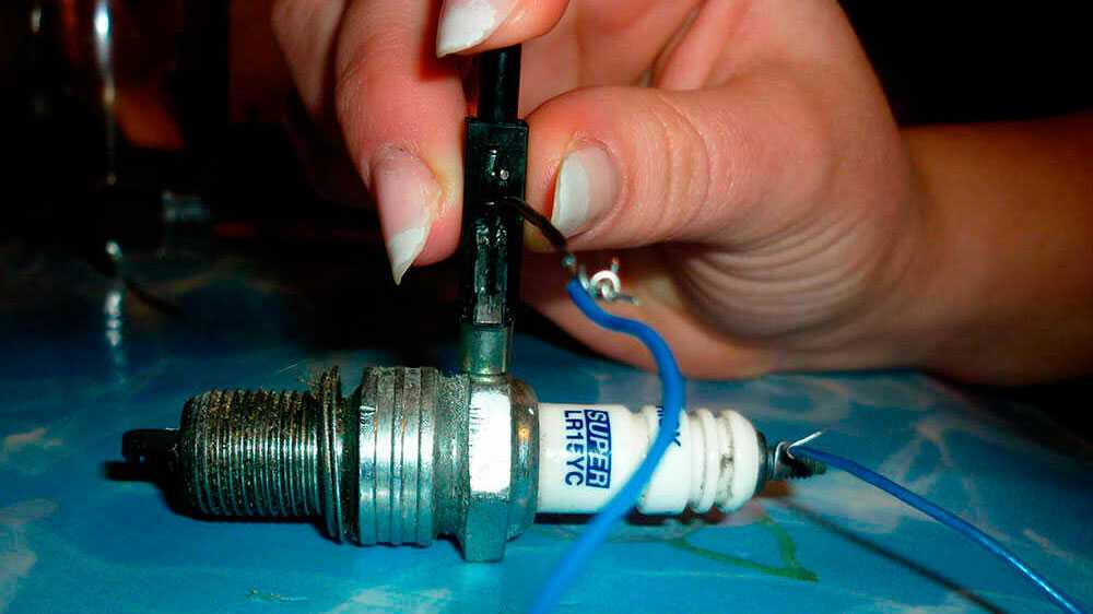 Проверка свечи при помощи проводов, характерная для автомобилей с карбюраторным мотором