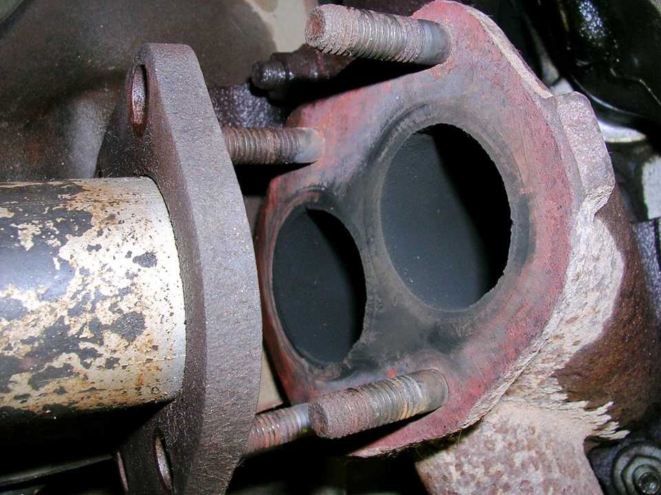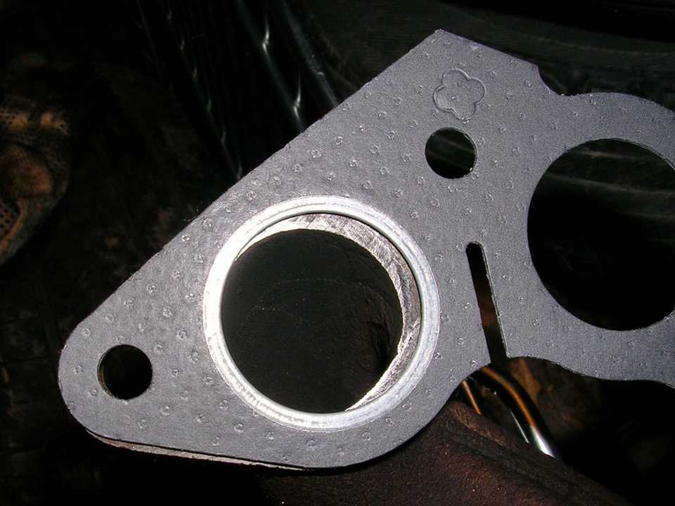 При замене приемной трубы нужно обязательно заменить прокладку между ней и выпускным коллектором. Также лучше поменять гайки крепления “штанов” к коллектору. Порядок действий такой: