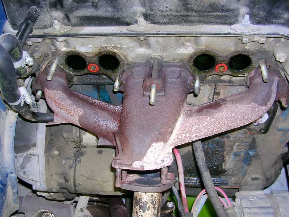 - Снимаем выпускной коллектор. Выкручиваем крепежные гайки и снимаем выпускной коллектор Снятие выпускного коллектора