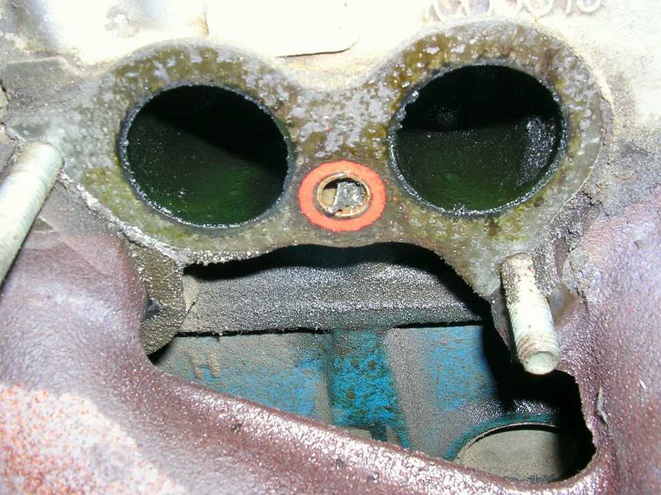 Черный хрупкий нагар на стенках выпускного канала ГБЦ второго цилиндра