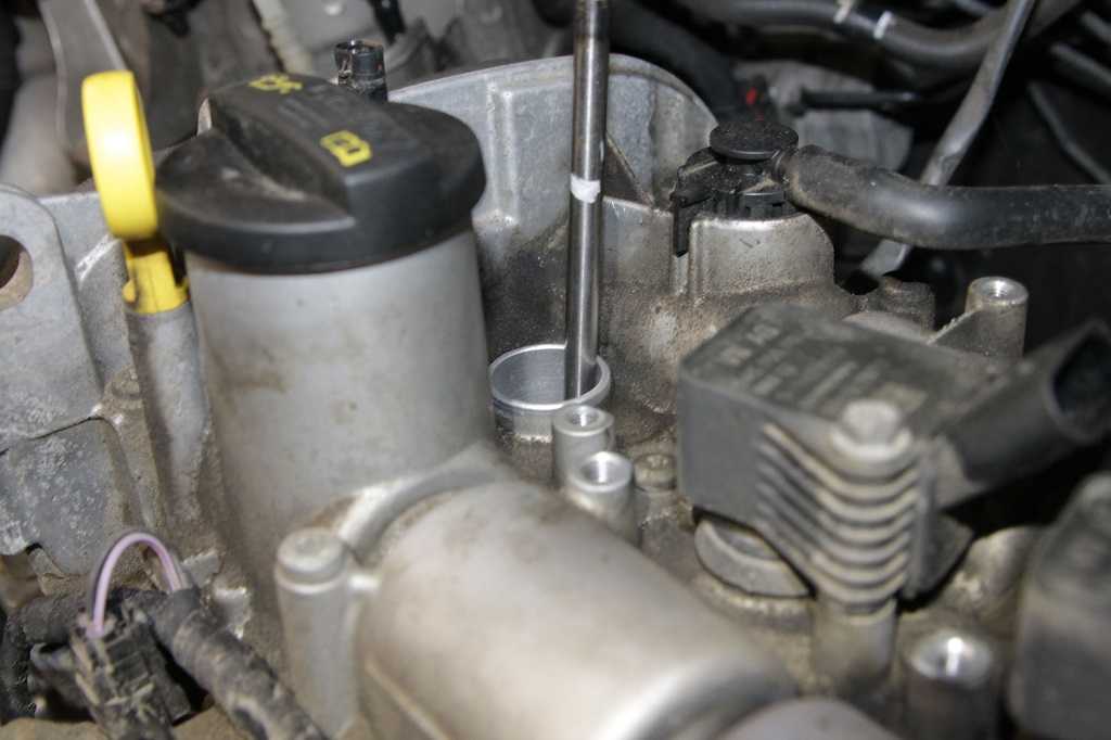 - Для выставления ВМТ необходимо вставить отвертку в отверстие пробки зажигания, при этом плавно проворачивать коленвал в направлении вращения двигателя.