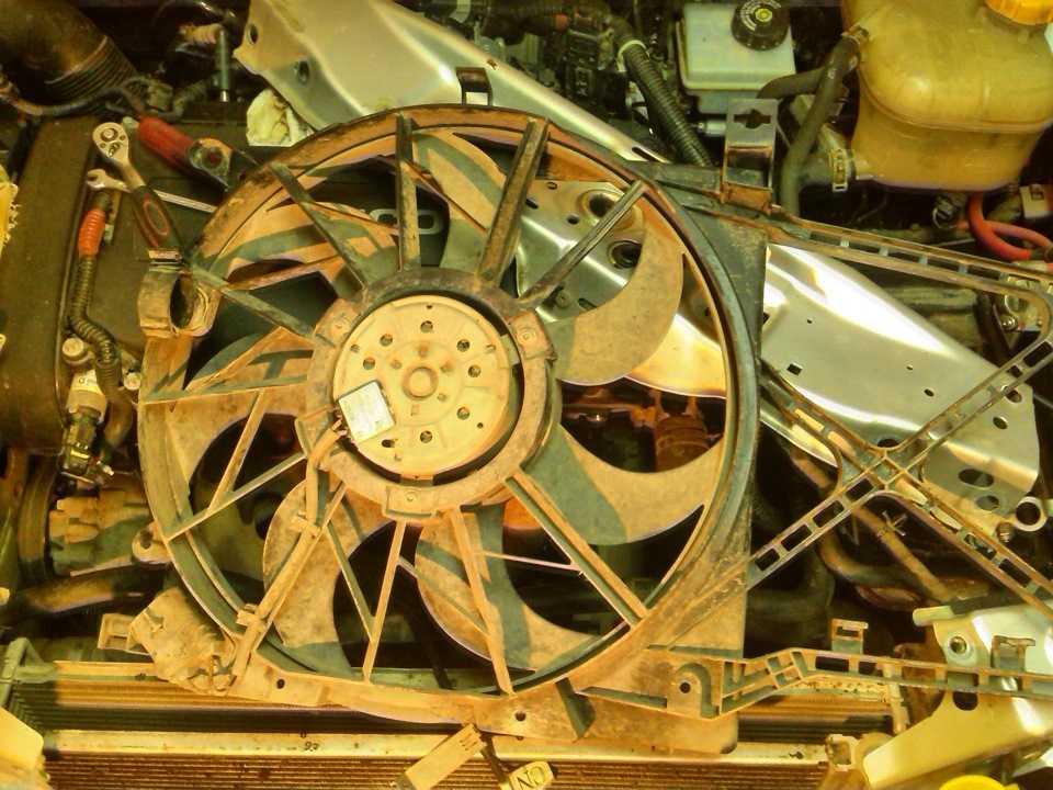 - Открутить крепления вентилятора радиатора охлаждения — головка Е10;
