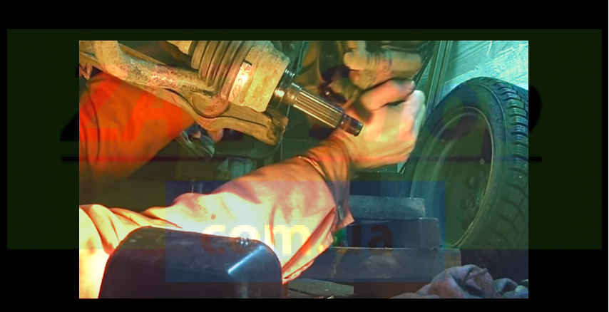 - Для начала решения этой проблемы снимаем оба передних колеса и устанавливаем автомобиль на две надёжные опоры или подставки.