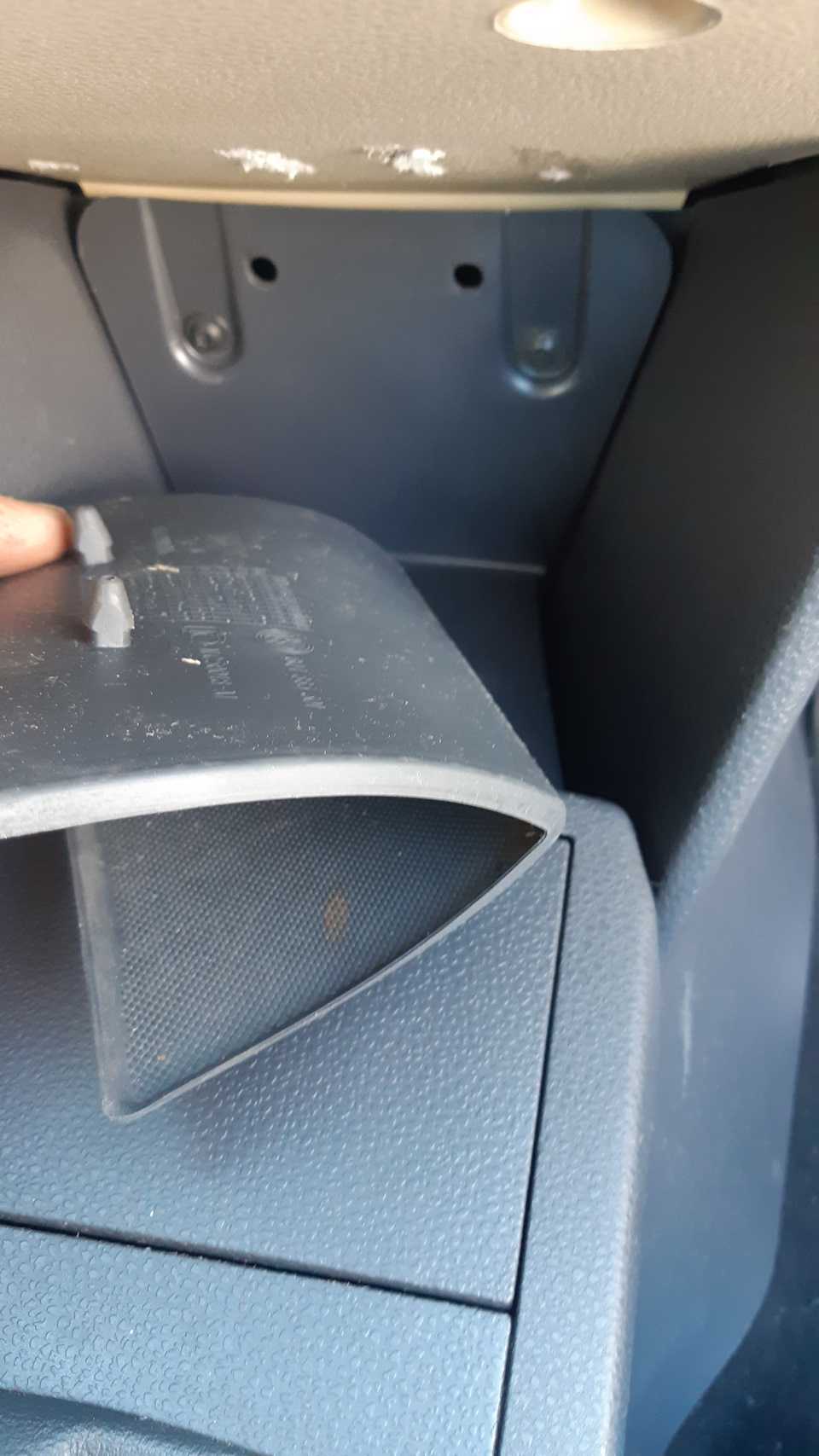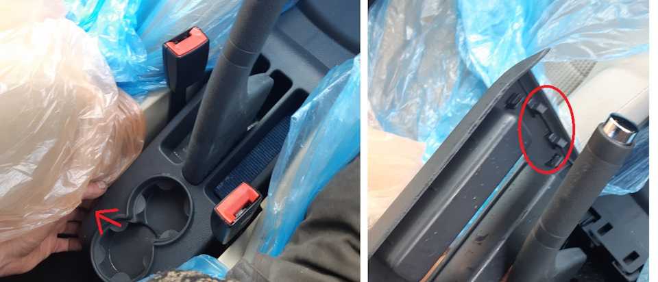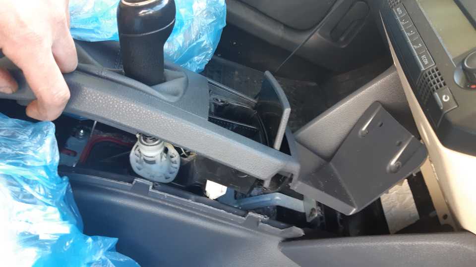 Пластик образующий полки под бардачком и с водительской стороны аналогичный стягиваем вверх и на себя.