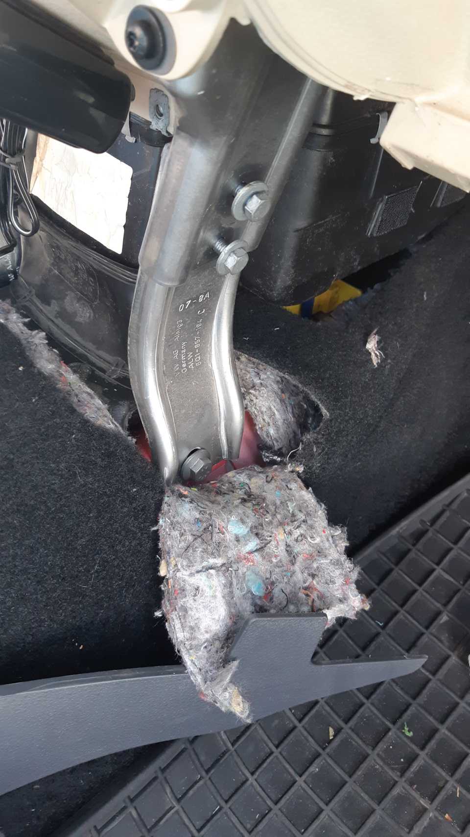 Лезем в салон. Передние сиденья отодвигаем назад, достаем все из полок под центральной панелью и из центральной консоли.