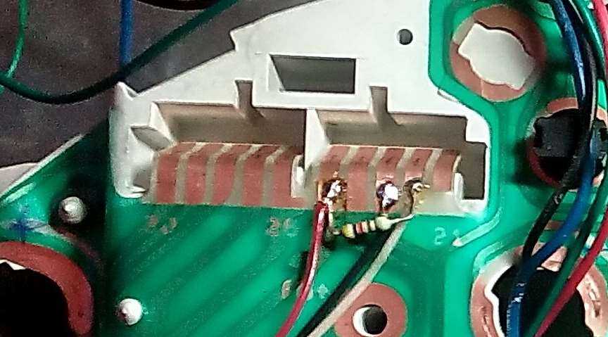 - Припаять сопротивление. Если после подключения приборки не работает тахометр на Ланосе, значит необходимо добавить резистор. Для этого понадобится взять резистор номиналом от 4,7 до 10 кОм, и припаять его между контактами 22 и 25 панели. Контакт 22 отвечает за сигнал от ЭБУ, а 25 — это плюс. Припаиваемый резистор является подтягивающим,