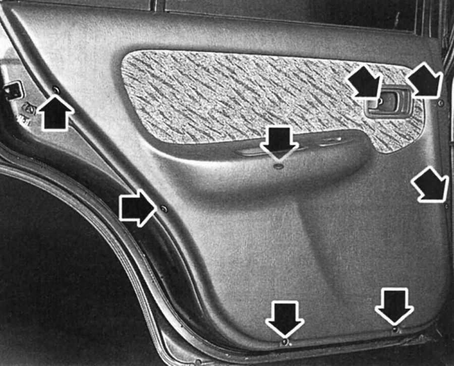 Задняя дверь в новой генерации устроена похоже, только на ней присутствует дополнительный декор. Обшивка передней и задней двери Первым делом попробуйте снять рукоять стеклоподъёмника, если она. Точки крепления обшивки карты аналогичны тем, что уже рассмотрены.