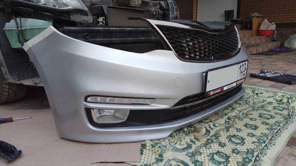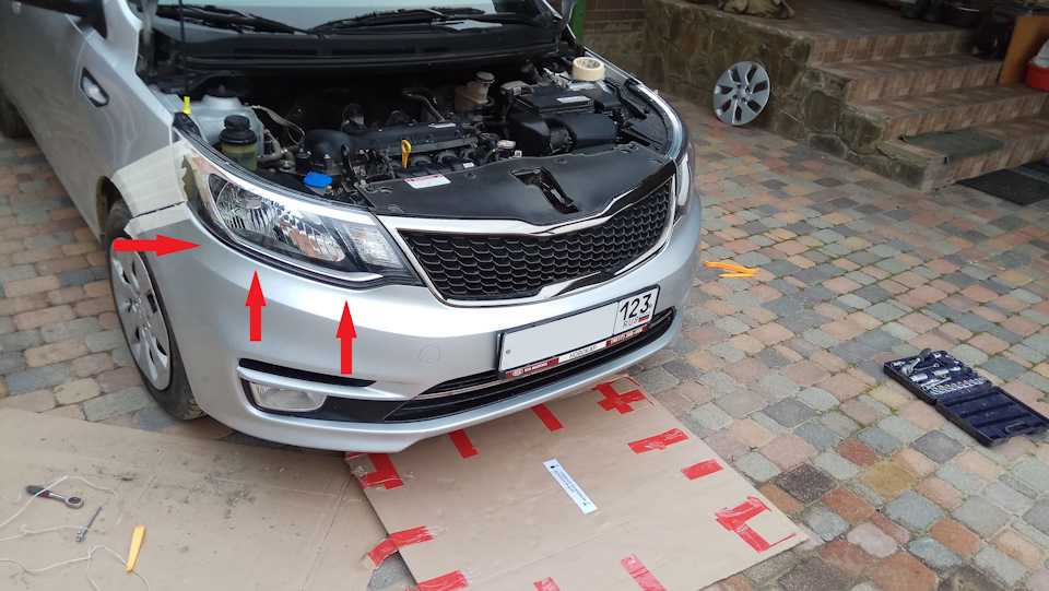 KIA Rio “GREY FALCON” › Logbook › Снятие бампера и установка ДХО в КИА РИО 3 рестайлинг