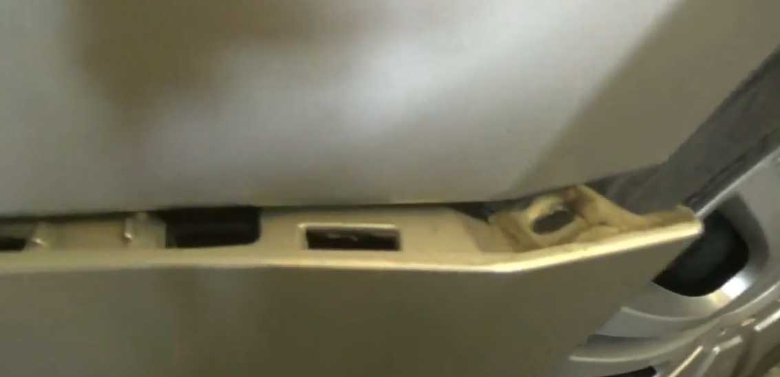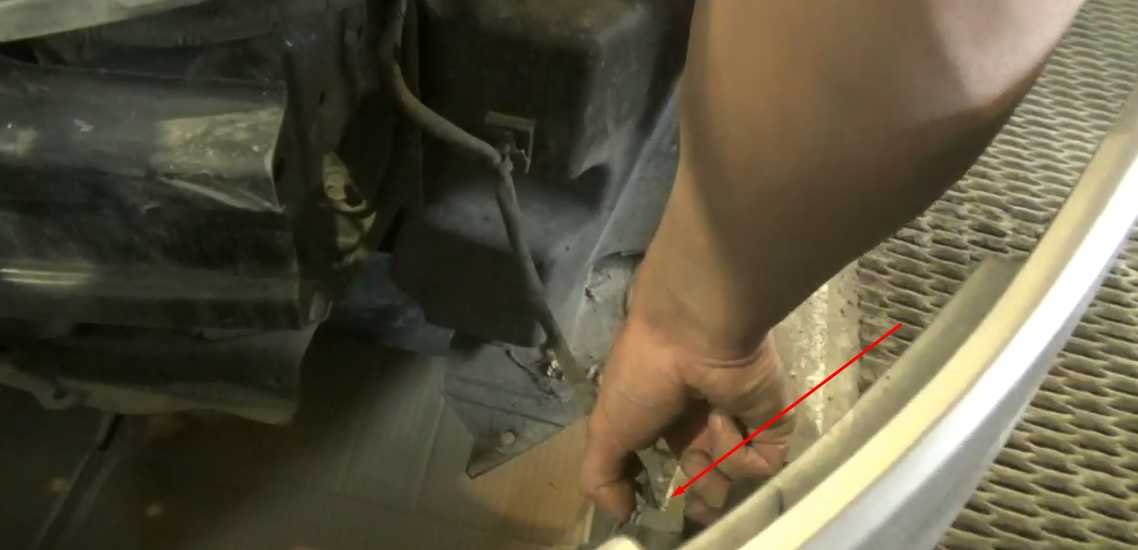 Иногда защелки не поддаются, в таком случае их необходимо подогнуть длинным предметом, пропустив его между бампером и решетчатой защитой.
