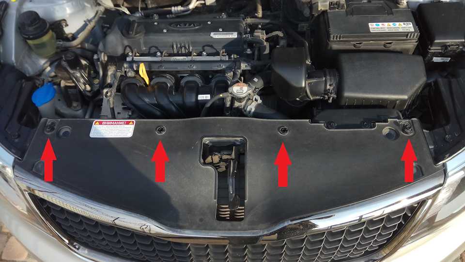Сценарий извлечения защиты радиатора актуален для всех Киа Рио, включая модель 2015 года выпуска.