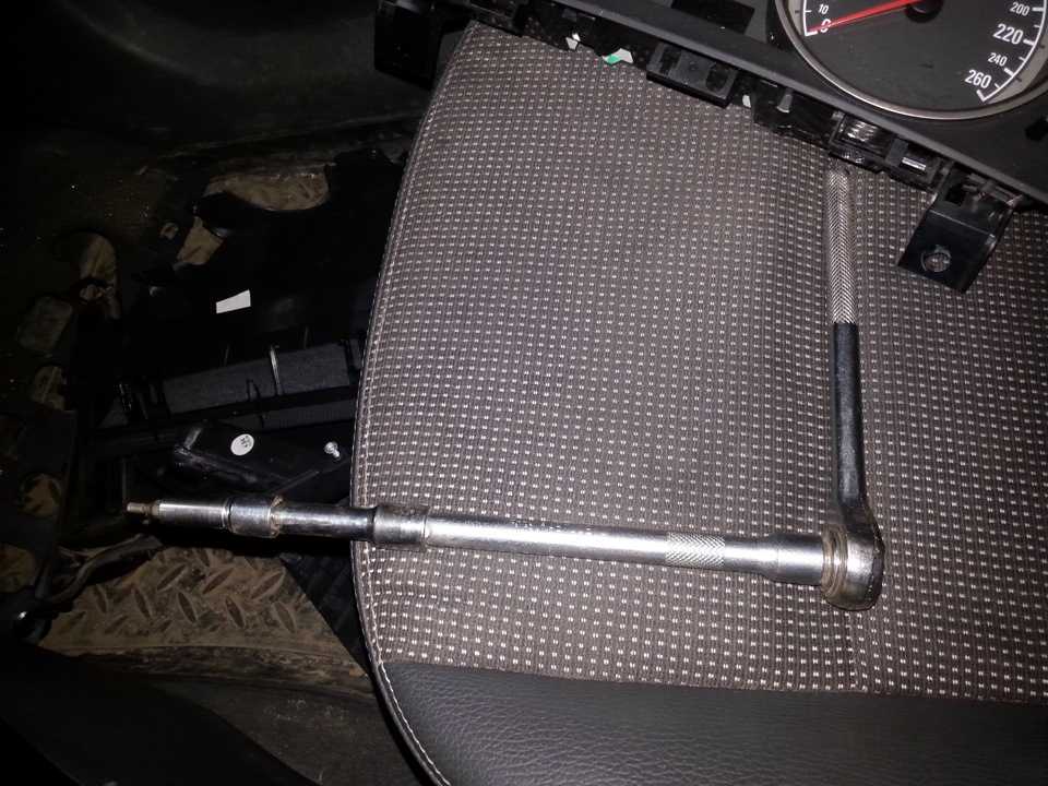 Отвернуть гайки крепления рулевой колонки Калины и опустить ее на пол. Снять центральный туннель.