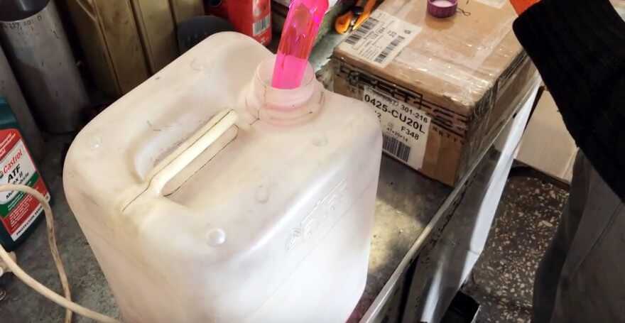 Подготавливаем охлаждающую жидкость к замене, для этого берем концентрат антифриза и смешиваем его в дистиллированной водой в пропорции 50 на 50.