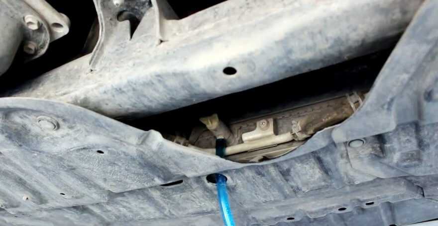 - Проверяем уровень трансмиссионного масла в КПП с помощью щупа.
