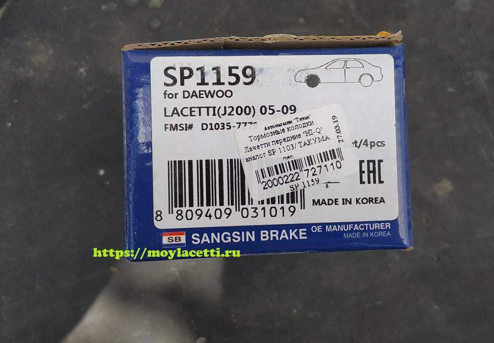 2. Передние тормозные колодки. Артикул GM 96405129. В моем случае использовались колодки Hi-Q SP1159