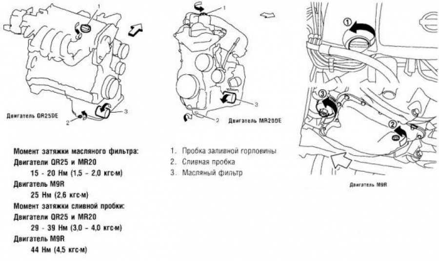 - с мотором QR25DE использует 4,6 литров такого же масла как 2-х литровая версия.