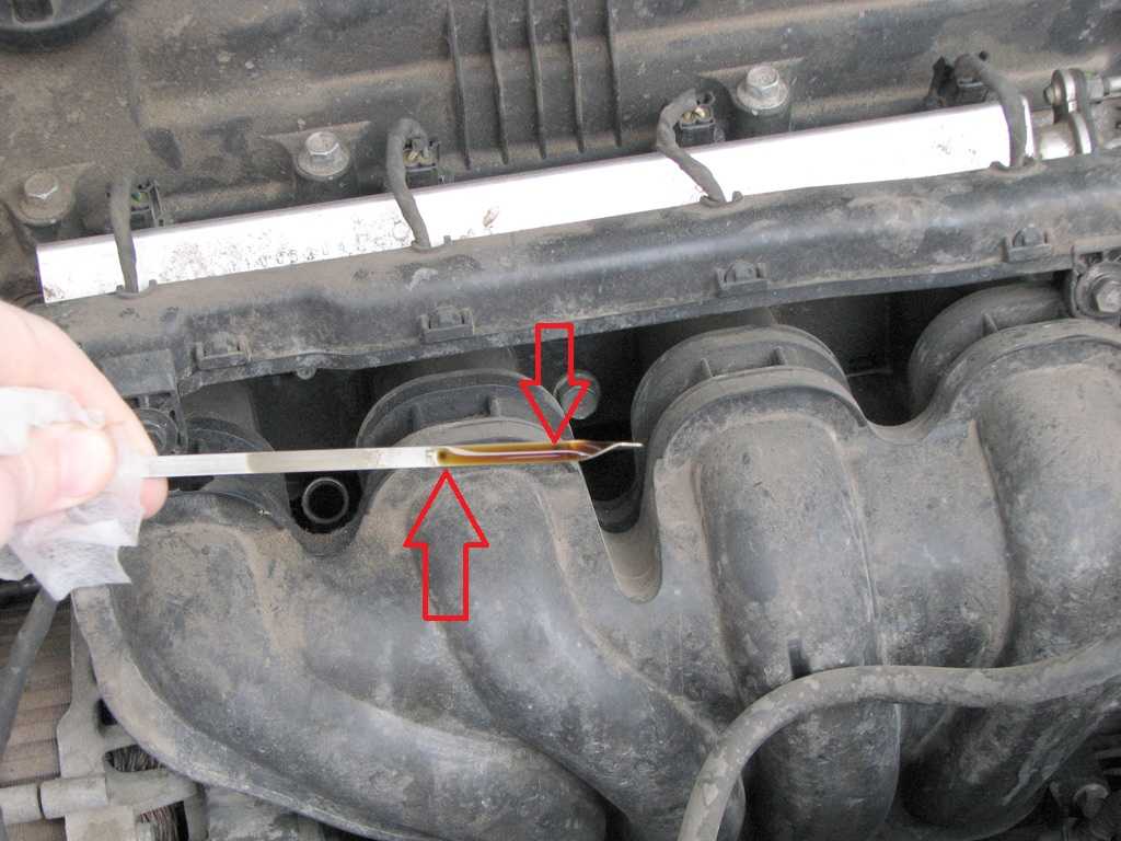 После прогрева замеряют уровень смазки, в нагретом состоянии он не должен превышать допустимого максимума на щупе. При необходимости излишек откачивают с помощью шприца или груши.