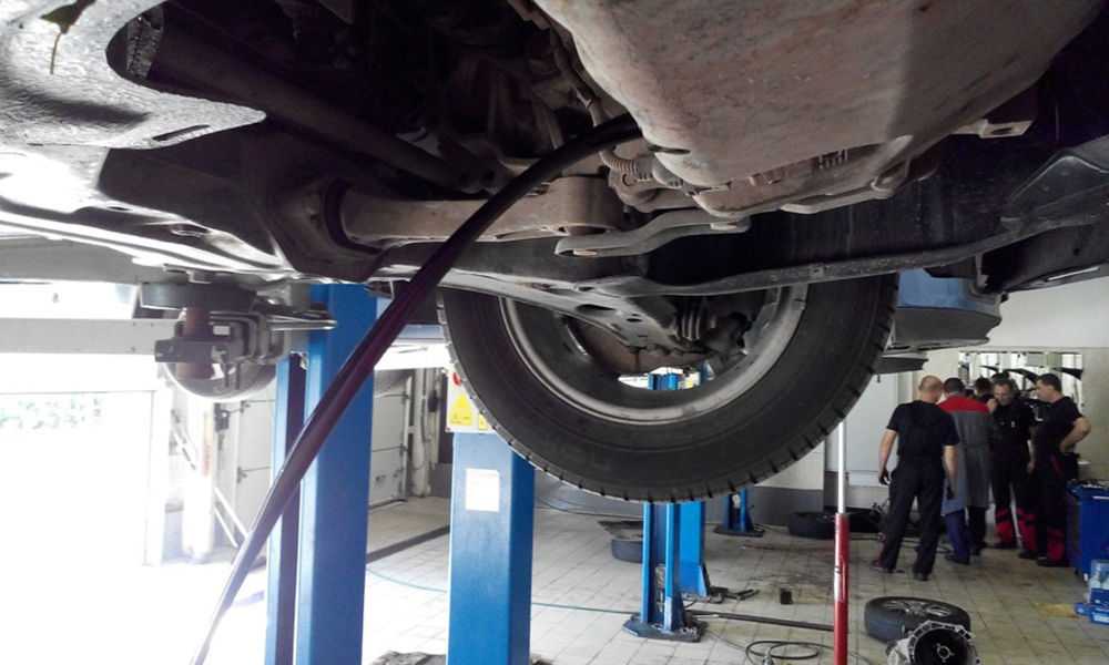 Работу следует выполнять на смотровой яме, эстакаде, пандусе, подъемнике или ровной поверхности, поддомкратив переднюю часть и установив упоры, при этом также нужно заблокировать задние колеса и поднять ручник.