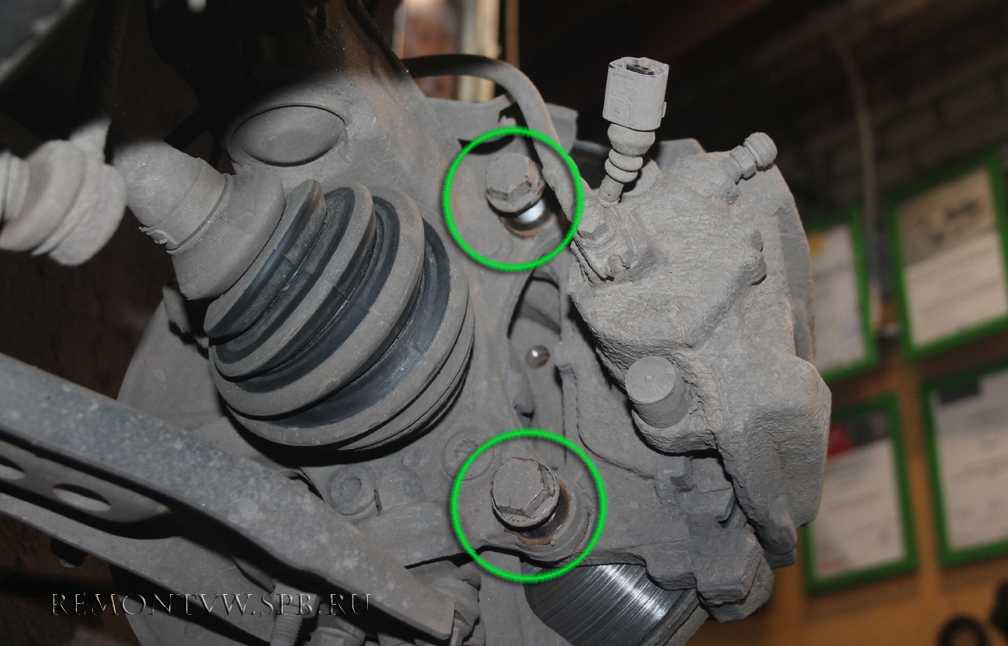 8. Ослабьте затяжку гаек болтов крепления поворотного кулака