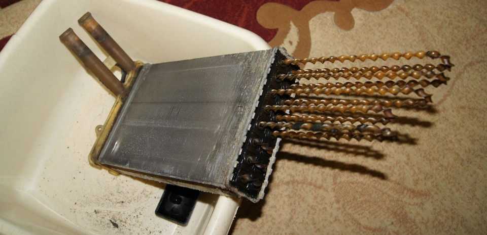 В автомобилях применяются радиаторы, изготовленные из медно-латунного сплава, и алюминиевые. Эти металлы по-разному реагируют на кислоту и щелочь. Запомните: нельзя промывать щелочными растворами, а медные — кислотными. Если ошибиться, можно существенно усугубить ситуацию. Поэтому, перед тем как промыть печку на автомобиле, необходимо узнать, из какого материала он изготовлен.