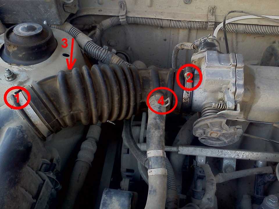 Шаг 1:снимаем воздушный патрубок и корпус воздушного фильтра