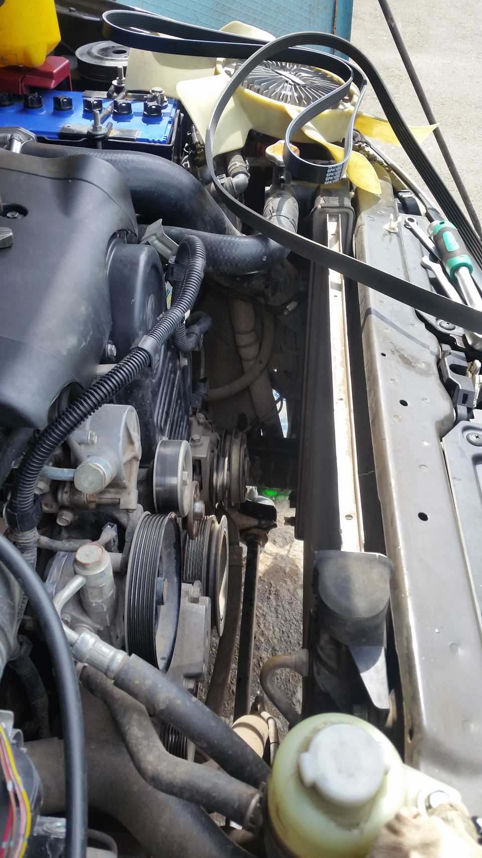 - Открывается взору ремень, вращающий генератор, помпа системы охлаждения и насос гидроусилителя.