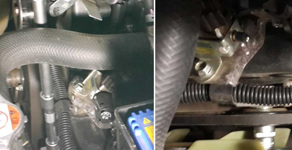 Слева – болт оси генератора Справа – болт крепления агрегата в прорези кронштейна |