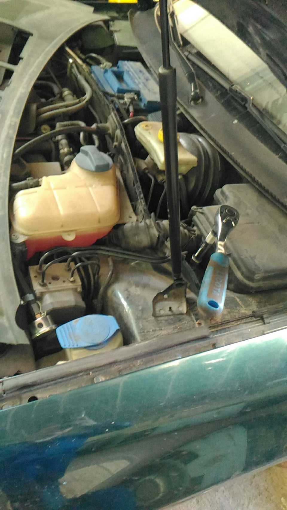 5] откручиваем верхних три болта под жабо два и один в мотроном отсеке, тут тож всё весело, на рестайле треугольный кронштейн из алюминия