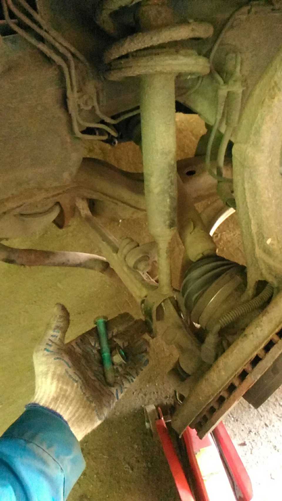 3] откручиваем болт держащий верхние рычаги, если его не выбьете, то дальше можно и не лезть , мне повезло, он легко вылез.