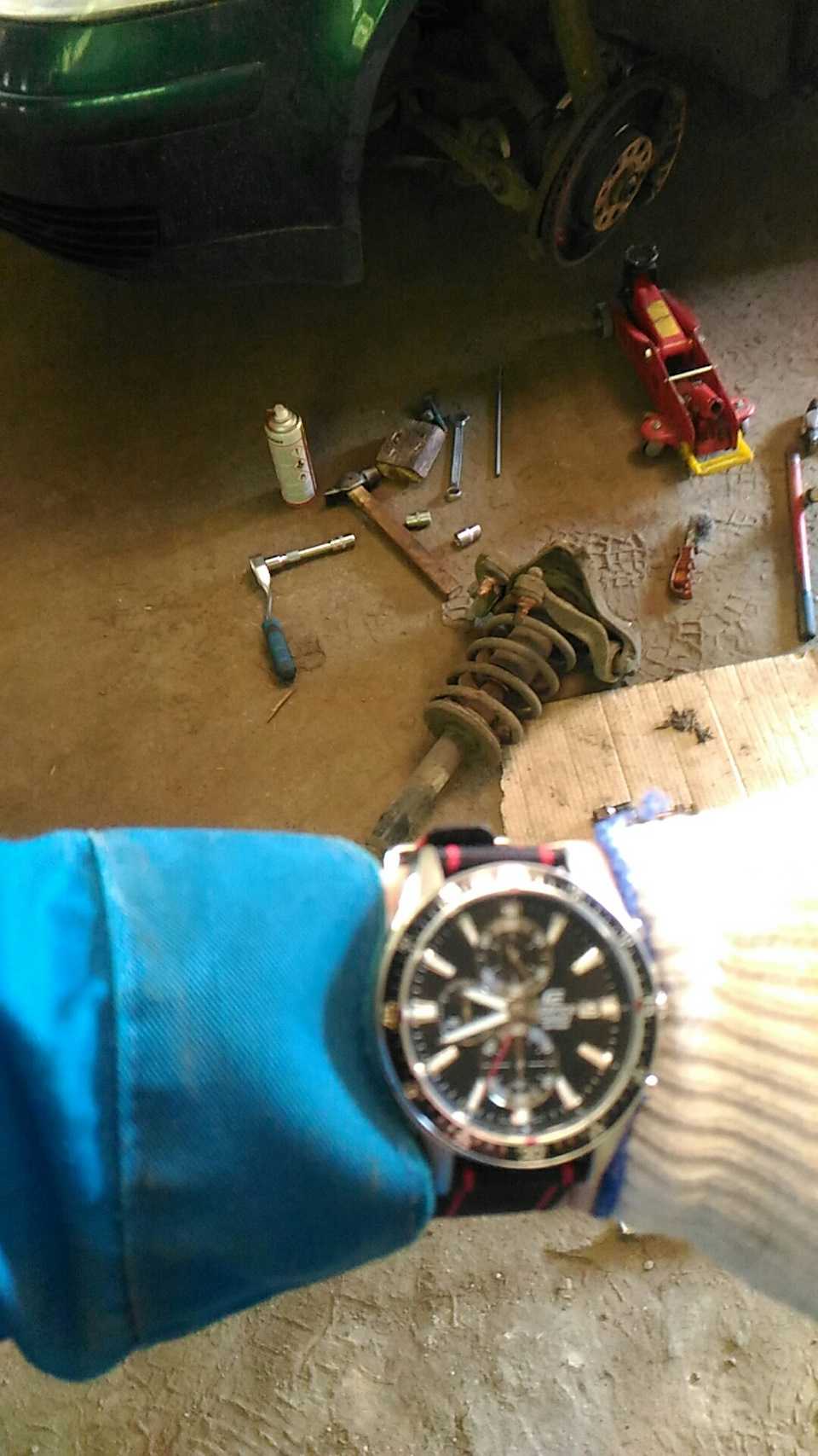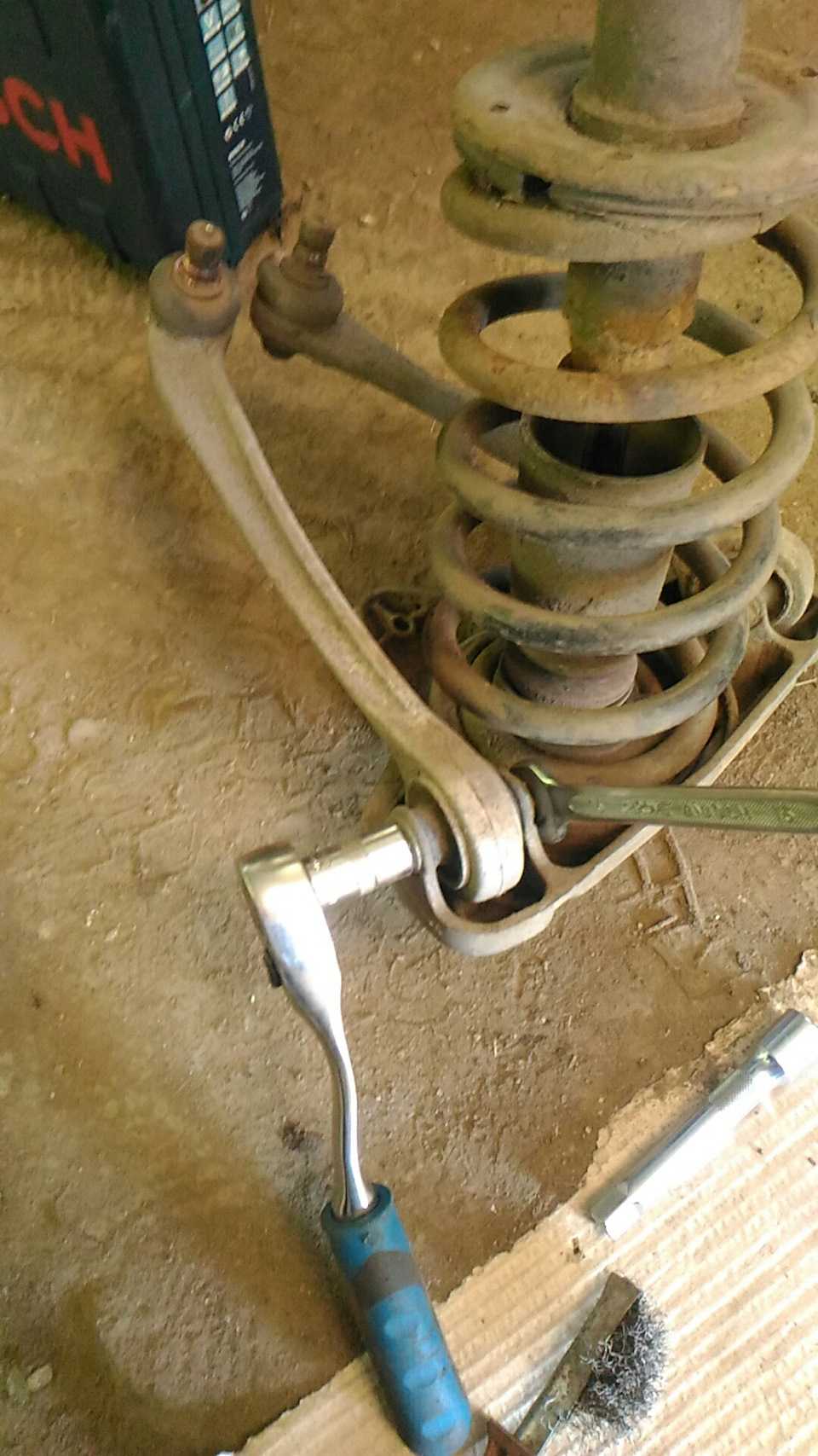 7] меняем рычаги, кстати еслиб болт был развернут, то передний рычаг можно былоб махнуть ничего не разбирая, но это только слева, т.к там между витков пружины болт проходит и в итоге яб мог бы избежать всей разборки узла, но увы до меня не догадались так сделать, я при сборке его перевернул, резбой вперед по ходу движения.