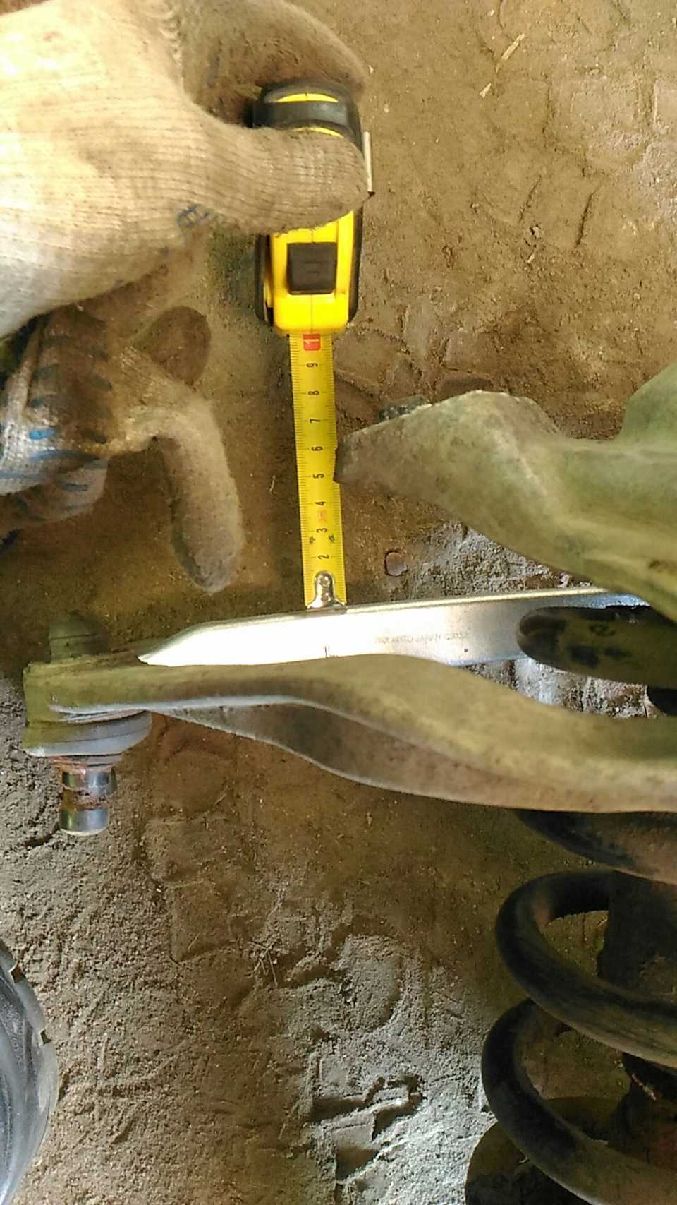9. С внутренней стороны (крыла) снимаем стопорную гайку и выдергиваем амортизационную стойку в сборе вниз.10. Измеряем штангенциркулем расстояние от центра тяги до края контр гайки на рулевой рейке. Это необходимо для выставления новой тяги что бы спокойно доехать до сход развала.