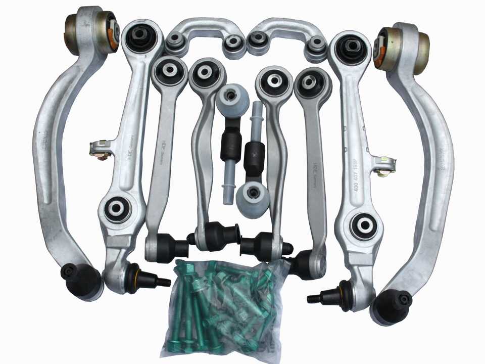 Наконец то дошли мои руки и финансы до смены передней подвески на моем пассате.,Хотя у меня в критичном состоянии было всего несколько рычагов, но было принято решение менять всю подвеску сразу., взял я себе комплект подвески для моего пассата фирмы HDE …(в него входит восемь рычагов, стойки стабилизатора и рулевые наконечники).