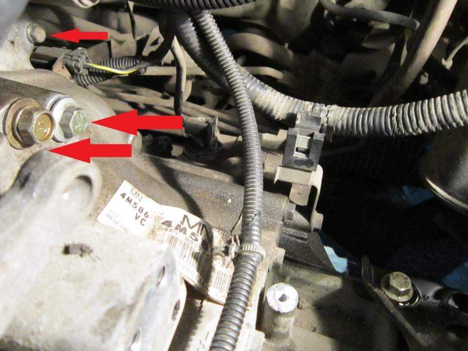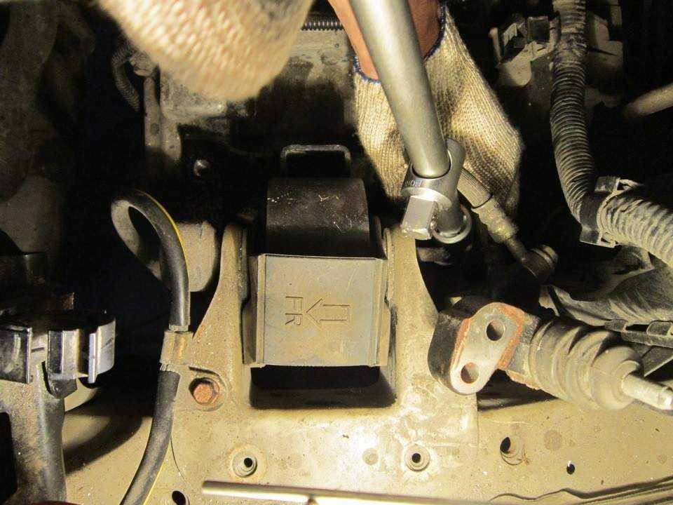 Открутите болты (2 шт.), которыми ДВС крепится к подушке, и один, которым он крепится к кронштейну.