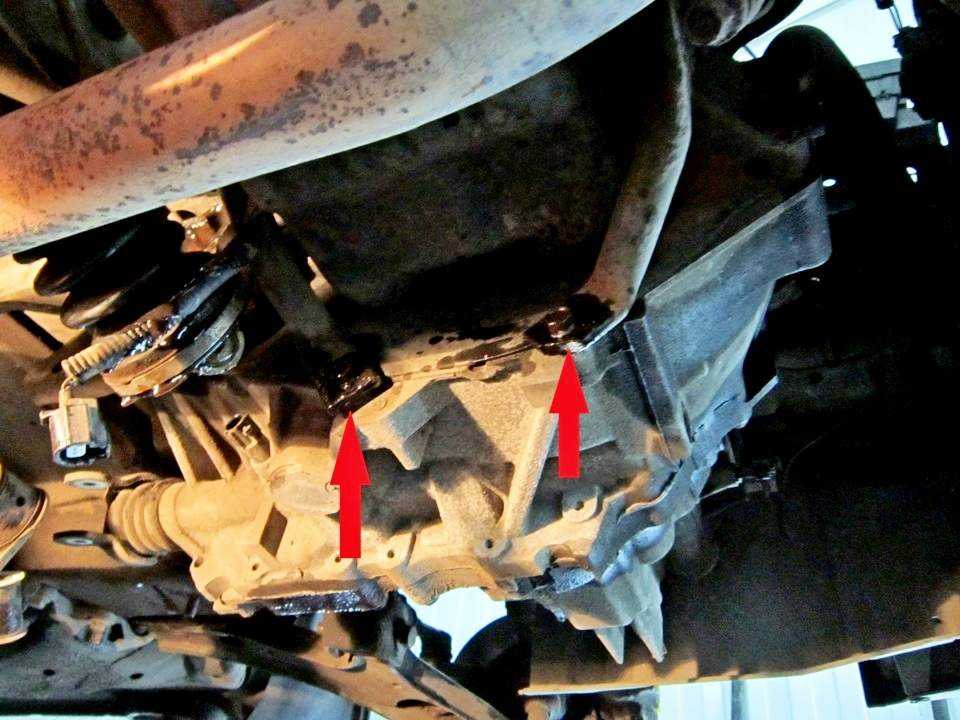 Автомобиль поднимите на подъемнике. Потом демонтируйте защиту двигателя и при помощи шестигранного ключа 14 мм открутите заливную пробку МКПП.