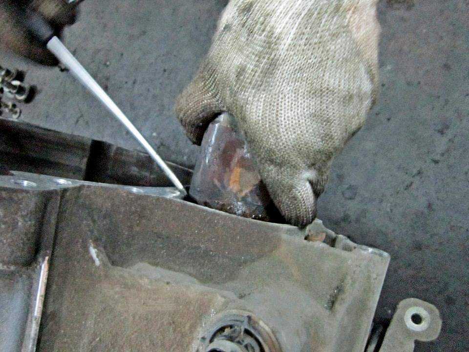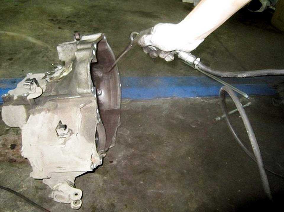 - Теперь, после демонтажа коробки переключения передач, необходимо очистить её от абразивного материала, грязи и прочих следов внешнего влияния.