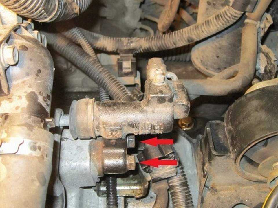 - Выкрутив два болта, отводим в сторону гидропривод сцепления.